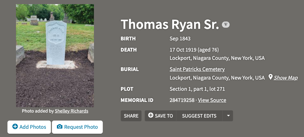At 10am, Sat, Nov 8, 2025, there will be military honors celebrating the life of Civil War Veteran, PVT THOMAS RYAN at St. Patrick’s Cemetery, 23 Glenwood Avenue, Lockport, NY 14094.