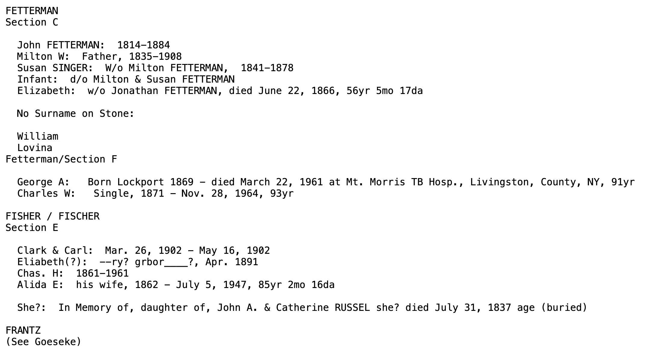 Stahler Cemetery Tombstone Reading 1997, Lockport